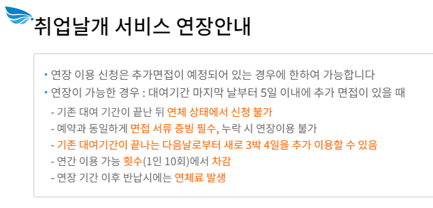 기본적인 대여기간은 3박 4일로 대여 연장을 희망하는 경우, 추가 면접이 예정되어 있는 경우에 한하여 연장 이용 신청이 가능합니다.